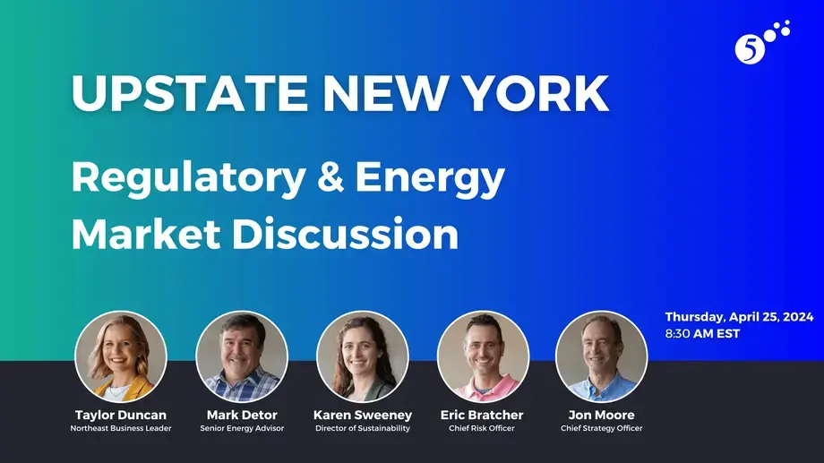 The team at 5 is back for 5’s first 2024 energy discussion for Upstate New York consumers. Our panelists dived into the latest regulatory news and shared recent commodity moves and risk management str...